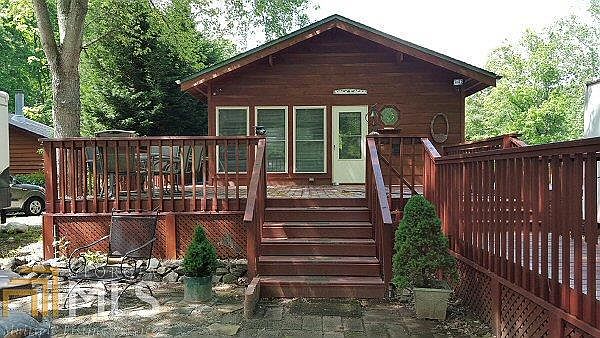 THIS CABIN HAS A FULL BATH, KITCHEN, AND OPEN LIVING ROOM - DINING ROOM WITH HARDWOOD FLOORS, PLUS A COVERED BACK PORCH WHICH OVERLOOKS AN OPEN FIELD ON THE TROUT STREAM GREAT FOR WILDLIFE WATCHING, LARGE FRONT DECK WITH STEPS LEADING TO PARKING PAD FOR RV, ALL THIS SET UP ON A LARGE CORNER LOT IN GATED MOUNTAIN RV COMMUNITY