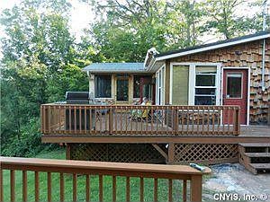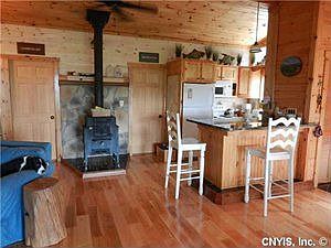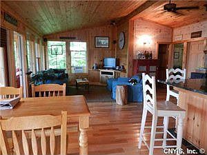 Nestled on 1.1 acre wooded lot & great view of ships, sunsets & Singer Castle. Mostly furnished, immaculate, move-in condition. Cottage is very spacious with granite counter tops/ Island with bar stools. Culligan water system & UV light 3-zone speaker system Wooden floors & carpet in bedrooms. (3) decks, Storage shed Outdoor custom fire pit, Dock -- sitting area on water, Cedar shakes siding Electric awning. Quaint, homey, a real cottage getaway, Adirondack feel on the River, private, relaxing, perfect place for spring, summer, fall (3-season!)