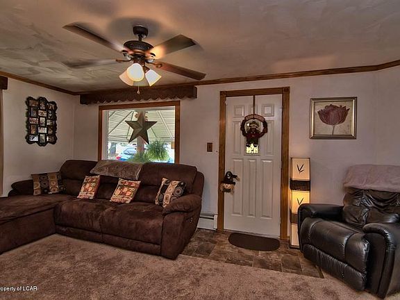 Charming 2 Story home with Central Air! You will love the cool nights from your front porch. Living room has cozy carpet (hardwoods underneath) and ceiling fan. Modern eat-in kitchen. Large finished basement with sliding doors to patio area. 1 year old furnace/water heater. Modern gray bathroom. Large shed in rear. Low taxes. Spacious bedrooms, one has a double closet. Parking in Rear!