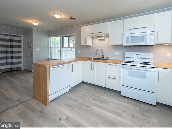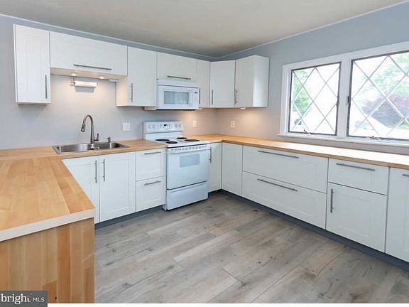 Tastefully remodeled Levittowner with brand new sparkling white cabinets and new counters.Double sink and stainless refrigerator complete the kitchen. Replaced heater and newer appliances are included Neutral gray carpeting and planked ceramic floors.It has been freshly painted and gorgeous brand new bathroom.Two sheds and fenced yard plus a vivant alarm system (monthly 70.59)