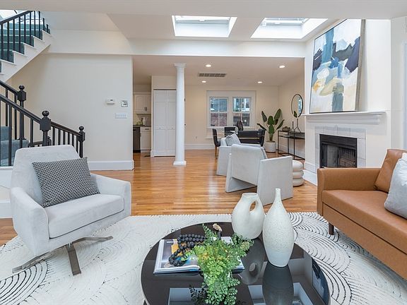 Expansive sun-plashed penthouse on picture-perfect Gray Street. A spacious foyer w/coat closet provides a welcoming entry. Next, a wood-burning fireplace creates a dramatic focus as an architecturally stunning sky-lit coffered ceiling bathes the living, dining, & kitchen in natural light throughout the day while simultaneously reflecting the home's gleaming hardwood floors. Two generously sized bedrooms feature efficient, custom designed closets. The en-suite Carrara marble primary bath is equipped with a separate shower & sumptuous jetted tub while a separate home office could easily double as a guestroom, nursery, or den. Additional features include custom bookcases, built-ins, recessed lighting, and in-unit washer & dryer. A full staircase leads to a large private roof deck w/sensational Back Bay & downtown skyline views. A+ location, just minutes to Back Bay, T, shopping, Theater District, & the South End's best restaurants. Many nearby rental parking options available.