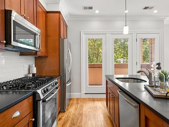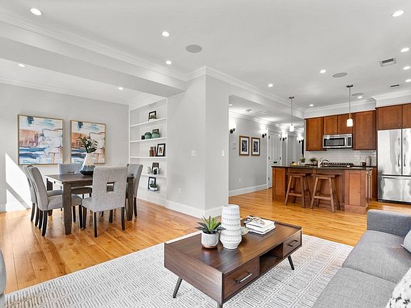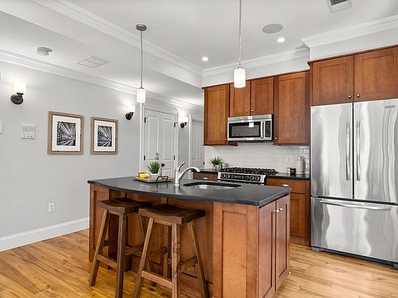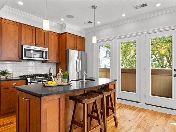 Stylishly appointed 2 bed + office, 2 full bath condo in top-notch JP location, minutes to Green St. T, Centre St restaurants & Jamaica Pond! Corner unit is bathed in sunlight & loaded with designer finishes. Kitchen with birch wood cabinetry, Bosch appliances, honed granite counters & island blends perfectly into the open concept dining & living rooms for entertaining. Sip coffee or container garden on your private covered balcony off the kitchen. Primary bedroom suite offers 2 closets, large marble bath and glass shower. There’s a spacious 2nd bedroom, + bonus room to use as a home office, nursery or guest bed. Enjoy high ceilings, birch wood floors, in-unit laundry, audio system, upgraded closet systems, built-in bookcases, private basement storage room + walk-out access for bikes. Fresh interior & exterior paint, new washer/dryer & concrete step repairs. Prime commuter location with easy access to downtown, Longwood, or Brookline, and close to abundant green space.