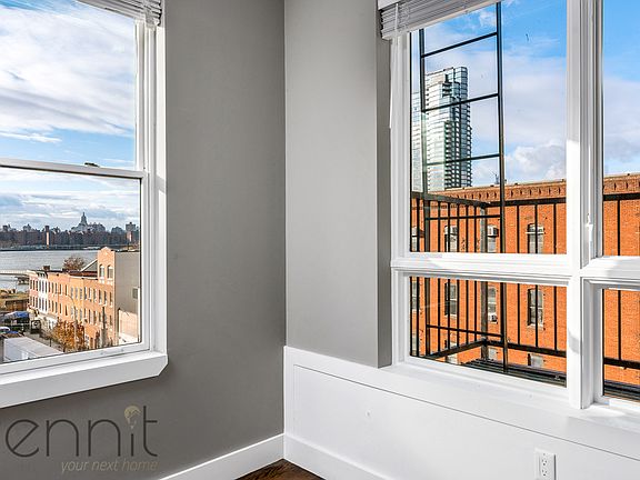 Unit with Water front and city skyline views Windows along side the apartment as well as windows Front & Back facing! The location is lit, right on Greenpoint Ave ONE block to the G Train at Greenpoint Ave stop Near Williamsburg's famous William Vale Hotel, The Greenpoint Loft, Black Rabbit, Pencil factory, Brooklyn Safe House and tons of more within a block or two distance! Brand new building, with rooftop access and in building Laundry Room! Large open Living Room with corner windows and windows all along this elongated space into the kitchen Bedroom fits a queen plus furniture, with great windows and closets Modern kitchen with stainless steal appliances including dishwasher High ceilings, Video intercom System, Hardwood floors, Building with Accessible Rooftop with city skyline views! Guarantors Accepted Central Air and Heat Pets allowed *Upon approval.