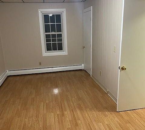 Freshly painted spacious 1 bedroom first floor apartment in a 3 family . Large 12 x 15 bedroom with closet . Living room off eating area. Modern fiberglass tub. ceramic floors in bath and kitchen. Updated kitchen cabinets with new counter tops. Enjoy back yard access from unit. Off street parking. No Laundry in unit . Non Smoking . First month , last and security deposit required. Gas baseboard heat and hot water , electric are tenant responsibility . Owner pays for water/sewer. cuts grass . No Smoking . street parking , no laundry hookups in unit .