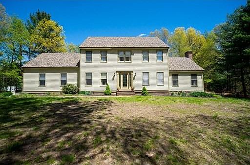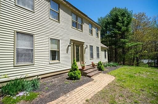 Enjoy a peaceful and serene setting in the heart of the country, at the end of a highly sought after cul de sac neighborhood! Tucked back from the road, this elegant 4 bed/2.5 bath colonial home sits on nearly 2.5 acres of wooded privacy. Sunken front-to-back family room features a wood burning fireplace and vaulted ceilings. Spacious eat-in kitchen with center island and sliders leading out to the deck. This flowing floor plan also consists of a mud room off the side entry two-car garage, formal dining room, and formal living or office. Gleaming hardwood floors. Second level features newer carpeting and plenty of natural sunlight flooding through the four bedrooms, including a master suite with large walk-in closet. Full unfinished basement offers lots of storage and potential. Roof new in 2016. Storage shed with electricity in the spacious backyard. Title 5 in hand. Part of a top rated school district. A beautiful home not to be missed at this unbeatable value!