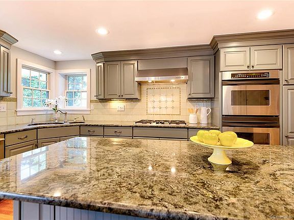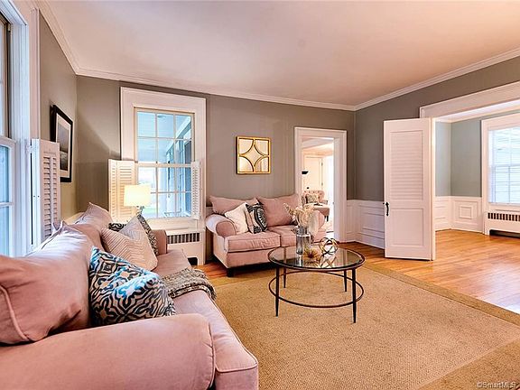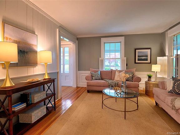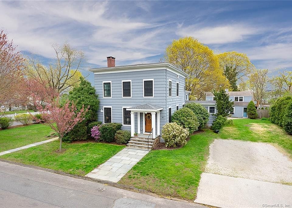 NOW $820,000 Walk to Guilford Green, Jacob's Beach and town marina. Italianate colonial home built in 1850 by Junius Norton. Wonderful outdoor spaces with covered porch, screened porch and paver stone patio make for great entertaining. The large gracious foyer welcomes you into the home. Period architectural details takes you back in time. Amazing hardwood floors original to the house. In 1999 and addition to the home provided for a large open kitchen with granite countertops, stainless steel appliances and gas stove that is open to the family room with wall of windows to enjoy all the seasons in New England. The informal dining area has a fireplace with beehive stove. The detached 2 car garage has a one bedroom accessory apartment that has rented for $1300 a month. Other uses could include home office, guest house, studio or au pair suite.