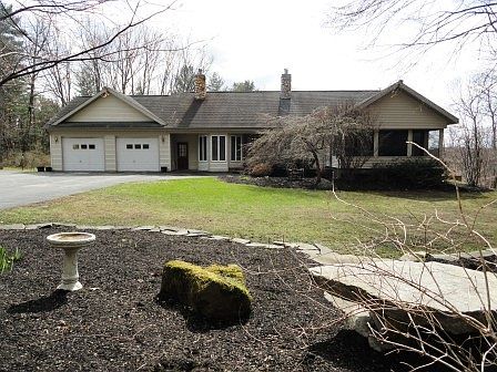 Well thought out open concept home with stellar views on over 12 acres. First floor living with great southern exposure, radiant heated floors, vaulted ceilings that let in natural light. Lower level offers cooler summers and warmer winters and could be easily converted to an in-law suite. Custom kitchen that offers lot's of storage, and opens into a huge living room and dining room for entertaining. Custom barn for horses, currently being used as a blacksmith shop. Sixth bedroom used as an office.