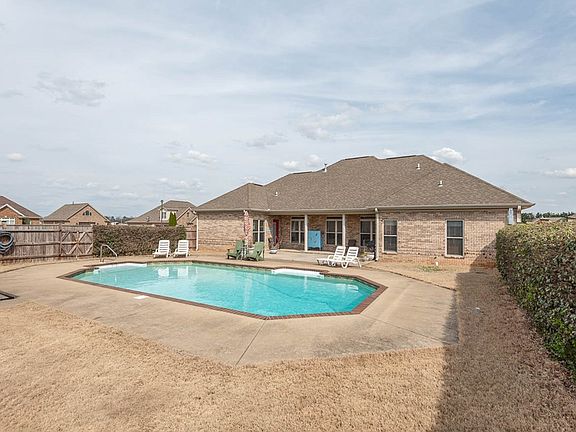 Relax by the pool this summer in this beautiful, 2371 sq ft, brick home with 3 bedrooms, 2-1/2 baths, covered back porch, 18X36 swimming pool, double attached garage AND double detached garage/ workshop (with unfinished storage/ bonus room area above it), and privacy fenced back yard! Large windows with transoms provide lots of natural sunlight for a bright and airy feel throughout the living and kitchen areas. Master bedroom suite features trey ceilings, glamour master bath w/ double sinks, and a walk-in closet! A must-see!