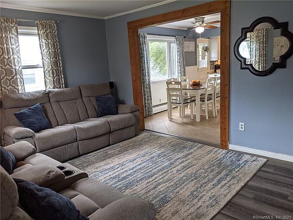 Welcome to 58 Homesdale Avenue. This charming cape is your key to happiness. Perfect location and within minutes to all of Southington's finest local restaurants, shops and town green, yet quietly nestled in a classic hometown neighborhood setting. This home offers 3 bedrooms and 1.5 bathrooms. Large master bedroom and full bathroom on the main level You'll love the open floor plan that allows for generous entertainment between the living room, dining room, and kitchen. Warm pellet stove in the living room to make your nights a little cozier. Relaxing enclosed three-season sun porch off the kitchen creates the perfect space for unwinding. Need more room? You'll find it in the partially finished lower level that can be used as a rec room, office or additional bedroom. Fully fenced in back yard complete with patio, fire pit, and shed for additional storage Well cared for and maintained. Recent upgrades include, living room flooring, wall-to-wall carpeting in bedrooms, electric water heater, ceramic tile floor in kitchen, repainted interior, and more.