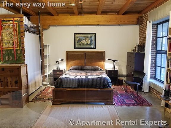 Modern Loft apartment in the heart of Davis Square. State of the art modern open concept kitchen with dishwasher. Floors are finished concrete. Garage parking. Includes heat, gas cooking, and water. Walk to the T in 3 minutes. (Reference #174566)