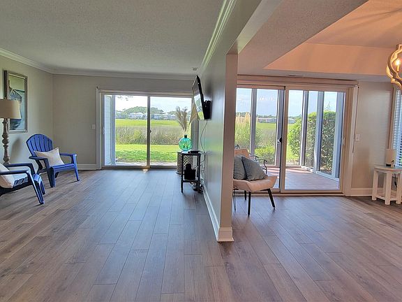 Total renovation recently completed in this spacious Inlet Point Condo! Pretty much everything is new inside this end unit. Enjoy your amazing sunset views over the marsh from the porch, patio, or deck. 3rd Row location is a very short walk to the private community access to the beach. Conveniently situated between both of the swimming pools. Spacious townhouse style condo features an open floor plan and marsh view from most of the living space. The ground level has a kitchen the opens the large dining area and living room. There is also a convenient 1/2 bathroom in the entrance hall, spacious laundry room, and sliding rear doors to access the screened porch and covered patio. Upstairs there is a master bedroom, with it's own bathroom, that overlooks the salt water creek and marsh. It also accesses a covered balcony. The other marsh front bedroom door has it's own partially covered deck. The 3rd bedroom is on the ocean side of the condo and share the hall bathroom. Inlet Point Community Amenities include: 2 swimming pools and a hot tub, private boardwalk and dock on the tidal saltwater creek for fishing and crabbing, private access to the beach, 24-hour guarded entrance, and a right to reserve the community clubhouse. The community allows pets, golf carts, and boats for owners. Square footage is estimated and not guaranteed. Buyer is responsible for verification.