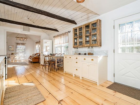 Short-term, fully furnished rental (up to 6 months). Perfect for temporary housing needs between moves. Nestled on 1.5 acres in Warwick, this quaint Arts & Crafts style cottage offers a tranquil escape and private back garden, while being 5-10 mins from Warwick and Florida main streets. The first level has a wood-burning stove providing warmth and ambience whether cooking in the kitchen, dining, or relaxing in the living room. On the lower level, you'll find the spacious main bedroom with a second wood-burning stove surrounded by built-in cabinetry, king-sized bed, and desk in a flexible nook that could be used as a workspace or dressing area. The second bedroom provides ample space with two twin beds, a dresser drawers, and desk. Completing the lower level is a full bathroom, washer/ dryer, and a multi-purpose room that could potentially be used as a home office, den, or home gym, leading outside to a covered patio and expansive backyard with a hammock and outdoor seating.