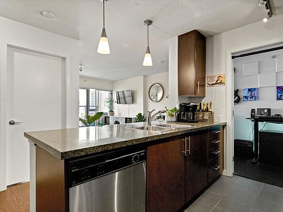 Welcome to the beautiful & architecturally unique Firenze Tower 1 @ 58 Keefer Place. Its all about LOCATION! This gorgeous 687sqft. 1 bedroom, 1 bath, + den, + heated solarium boats an open concept kitchen, granite countertops, stainless steel Whirlpool appliances, a mix of tile & laminate flooring, in suite laundry. Stunning North-West exposure, the floor to ceiling windows, showcase to the North Shore Mountains, ocean views and the Historic "W" of the Woodsward Building. Conveniently located near SkyTrain, bus, cafes, restaurants, schools, groceries & shopping. Minutes away from Gastown & Yaletown, Amenities include indoor pool, gym, lounge, hot tub, sauna & courtyard! Rentals allowed! Short term rentals & Airbnb allowed! Great for first time home buyers & investors! Call now to View