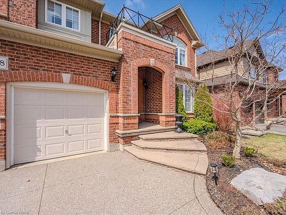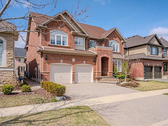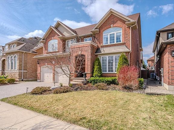 Stunning former model home in the Prestigious Kiwanis Park Neighbourhood. Great curb appeal with double garage, Exposed concrete driveway, covered brick porch and beautiful landscaping. Inside, you'll find a formal dining room, an open-concept eat-in kitchen, magnificent open to above great room with soaring ceilings and gas fireplace. The main floor also features a 2pc powder room, laundry room, and a dedicated office or a 4th bedroom. The kitchen is a chef’s dream, with stainless steel appliances, marble countertops, under-cabinet lighting, and ample storage. Maple hardwood flooring flows throughout the home, complemented by elegant arched doorways and custom built-ins. A grand staircase leads you upstairs to a versatile landing with a perfect desk space for homework or studying. This level also offers two spacious bedrooms with a Jack and Jill bathroom, as well as a private Master Suite with a 2nd gas fireplace, sitting area, 2 walk-in closets, and 5 pc ensuite with bidet and soaker tub. The fully finished basement offers a huge rec room and 3 pc bathroom ideal for family and friends gatherings or your own daily enjoyment. Recent updates including furnace 2024, AC 2024, stove 2024, all bathroom countertops 2024. Basement newer flooring and pot lights 2023. House features custom rounded wall corners throughout. Fenced backyard with stamped concrete patio and storage shed. Within walking distance to beautiful parks, scenic trails, massive green space, and the grand river. A short drive to both Universities, Conestoga Mall, and Highway 85 with easy access to 401.