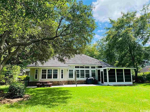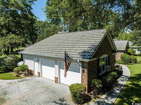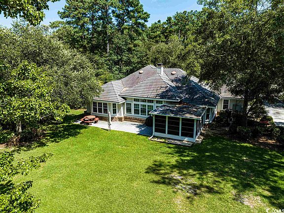 58 King George Lane - Beautiful brick home situated on a large .64 acre lot with views of the 7th hole in Wedgefield Country Club in Georgetown, South Carolina. This popular floor plan features three bedrooms with two and a half baths plus several living spaces so everyone has a spot to relax. Large great room with two sided wood burning brick fireplace, large formal dining room area, huge sun room on the other side of the fireplace, large kitchen with breakfast bar and nook, pantry, large laundry room, tall ceilings and over 2,500 heated square feet of living space. The huge owner's suite has a tremendous bay window with bench seating and storage, and ensuite with walk in closet, shower and jetted tub. Additionally, there is a two car side load garage, screened porch, large patio for grilling, detached shed with power and AC, generator, titanium roof, brand new HVAC as of 10/2022 and low annual HOA fees. There is a slight landscaping buffer between the yard and the golf course so there is some privacy but the view remains. Wedgefield Country Club is an active community with it's own public golf course and boat landing into the Black River. Enjoy lunch at the onsite Brick House Pub, an easy golf cart ride away and golf memberships are available if you so wish. Close to historic downtown Georgetown Waterfront Harbor Walk, shopping, wonderful restaurants, fresh seafood vendors, and access to five rivers that surround the area with an easy drive to Pawleys Island, the closest public beach access.*Buyer responsible for verifying square footage of home and yard.