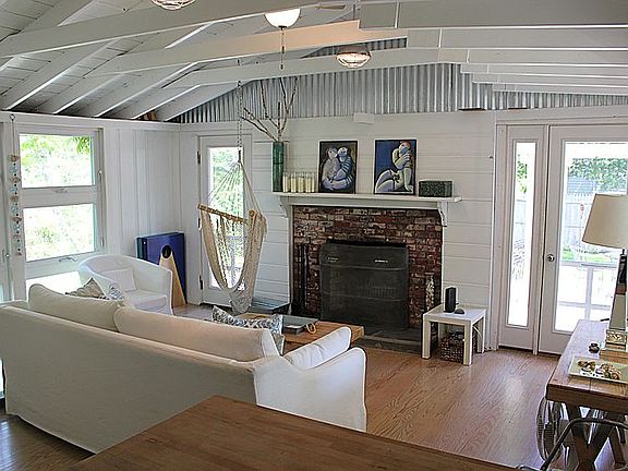 This is it - the beach house you have been hoping for! Create lifetime memories in this adorable beach cottage located on a peninsula surrounded by water in a small private community with a beautiful and large private beach, playground, jetty, deep water dock and tidal river. Clamming, fishing, kayaking, boating, beach, and glorious sunsets all a 3-4 minute stroll away! This designer renovated home offers 3 bedrooms and 1 full bath. Huge, extremely private outdoor patio with pergola and firepit. Yard boasts hydrangeas, wildflowers, and seagrass all around and a tucked away outdoor shower. The indoor fireplace will keep you warm as you extend your summer season into fall, or in early spring when you can't wait for your summer to start. This is a very special place, where generations of families come together to share the best life can offer and kids can enjoy endless barefoot summer days. Freshly Painted, New Roof, New Electrical Panel, New Septic in 2008
