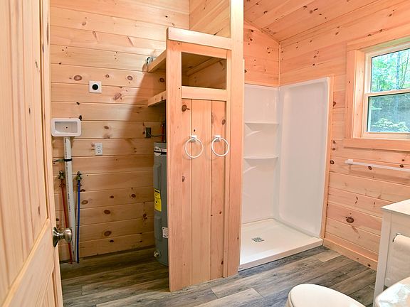 Welcome to 58 Lake View Loop in quiet Brownfield Maine! This home is a new construction with log siding and ready for you to move in! Located in a peaceful association with beach rights to Pequawket Lake, this home has so much to offer. Open concept living at its finest, plenty of storage/closet space. Easy clean up flooring throughout, tongue and groove pine walls and ceilings, giving you all the camp vibes and a heat pump for AC in the summer and heat in the winter. Enjoy playing some cards or your morning coffee out on your screened in front porch. This home also has 2 outbuildings on the property. The first consisting of a large bunk house, plenty of room for bunk beds, space to play games and give your guest/kids their own spot to hang out. The second would make a great utility shed or an even better place for a hot tub under cover or a ''she-shed''. In the summer enjoy the private association water access, with a floating dock, space to keep your canoes and kayaks or just lay out in the sun on the sandy beach! Located in the Fryeburg Academy School District, close to North Conway and a 35 minute drive to Portland! Schedule a showing for this wonderful home, it will not last!