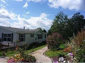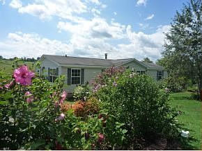 Mint condition, deeded double wide built to modular specs, spacious bedrooms and baths with stone f/p. Sits on 16.7 acres with beautiful country views. Large,solid older barn and large metal garage, both with electric and water. Open deck and patios with gorgeous perennial gardens! May be able to purchase home w 4 acres for $115,900