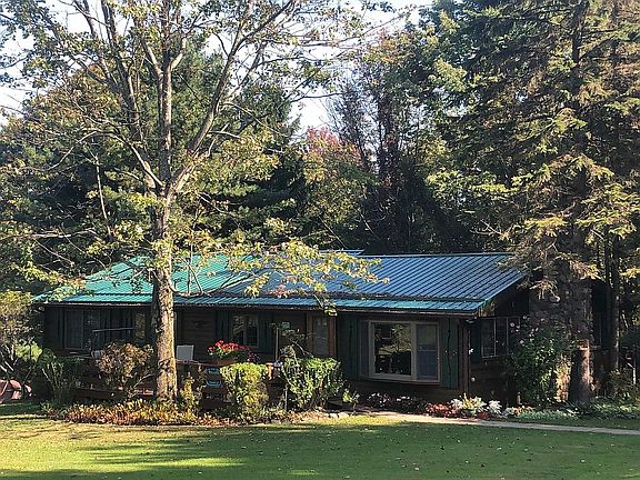 Cedar log interior and exterior walls, new green metal roof (2019), new oil furnace and hot water heater (2023), Anderson Windows, mountain stone fireplace with wood stove insert, all new hardwood, LVP, and carpeting throughout (2019), open floor plan, cathedral ceilings, stainless steel appliances, 2 remodeled bathrooms, first floor laundry room, front and rear decks, split rail fencing, basement with outside exit, great Mountain View, all on a partially wooded 2 plus acre lot situated on a shady lane. Lower basement level has 700 square feet on a concrete pad plus an additional crawl space of another 500 square feet for storage, furnace, oil tank, and hot water heater. New well (2018) and water treatment system. Sand mound septic system installed by current owner and tanks pumped (2022).