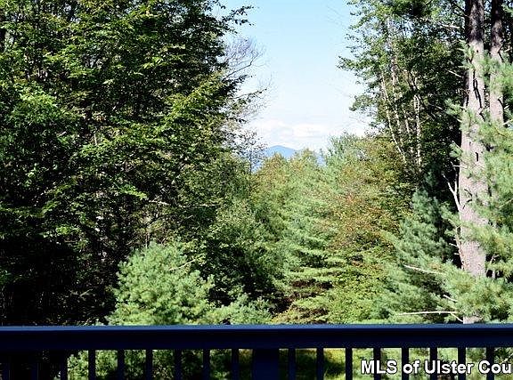 Off a quiet country road and down a long driveway you will find this treasure. A contemporary treehouse, totally private and surrounded by an expansive deck to take it all in. Just over 3 acres of woods and meadow, bordered by stonewalls, with stunning seasonal mountain views, year round with some tree topping. Just a short walk from the house to access the trail to Minnewaska State Park and Palisades Interstate Park which offers thousands of acres of protected land for year round enjoyment. This unique find has a rustic country feel, with open floor plan, hardwood floors, floor to ceiling fieldstone fireplace and fabulous deck. Basement is heated and finished and has its own full kitchen, charming woodstove and access to the outside. Such a peaceful spot on a very special country road. 10 minutes to High Falls and New Paltz. The picture of the Saunderskill Stream in the listing is walking distance from the property and located within the Palisades Park.