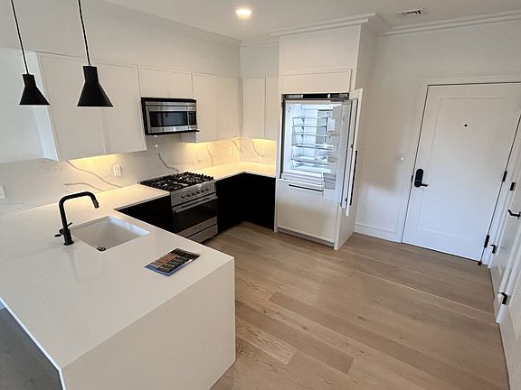 Each unit is thoughtfully designed with hardwood floors, gourmet kitchens featuring custom cabinetry, quartz countertops, and paneled appliances, and spa-like bathrooms with marble tile, Brizo fixtures, and designer lighting.