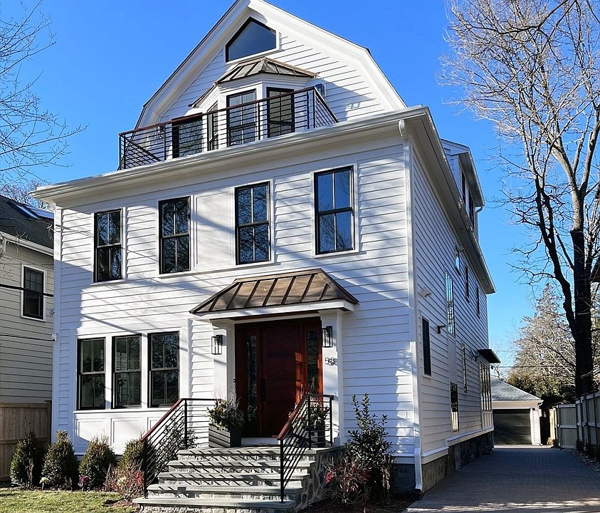 Thoroughly renovated and rebuilt, this breathtaking contemporary home was designed to incorporate lavish amenities plus plenty of space for work, play & entertaining. Fine features throughout the open floorplan include high ceilings, custom millwork & stonework, grand proportions, huge windows, and superior climate control. The 1st floor showcases a spacious living & dining room, chef’s kitchen with high-end appliances & finishes, and a massive family room with sliding glass doors to the deck, patio & fenced-in yard. Upstairs hosts the luxurious primary bedroom with an en-suite bath, 3 more bedrooms & 2 additional bathrooms, plus laundry. The 3rd floor houses an expansive creative space, 2 more bedrooms, balcony access & a bathroom. The 33’ playroom is on the top floor. The lower level hosts the media room & wet bar, exercise studio, mudroom, and bathroom.