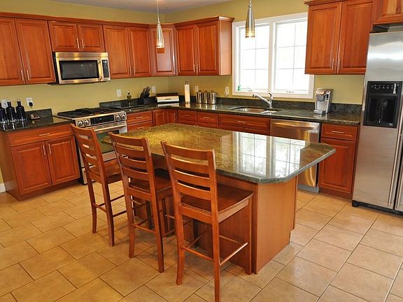 "WARM and INVITING " Custom Built ( 1 Owner) 4 Bedroom,2.5 Bath.2 Car Garage.Hip Roof Colonial, Custom Open Kitchen with Cherry Cabinets, Granite Counters ,Center Island, Stainless Steel Appliances & "Eat -In Area" ,Open and Spacious 26 x 24 Cathedral Family Room with Stone Gas Fireplace ,Formal Dining and Living Room with Wainscoting & Crown Moldings, Large Master Bedroom Suite with Tiled Master Bath, Jacuzzi Tub ,Granite Counters, and Large Walk-in Closet, Hardwood Floors 1st & 2nd floors , 1st Floor Study, Central Air & Vac, Media Room, Play Room and Exercise Area in Finished Tiled Lower Level with 2nd Stone Gas Fireplace,