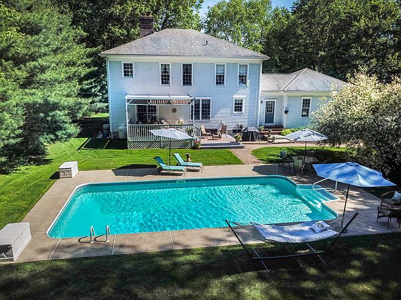 Located in an area of fine homes sits this beautifully maintained colonial on a quiet country cul de sac. Summer never felt this good with a refreshing in ground pool and multiple outdoor entertaining areas. Formal entry to elegant dining room and formal living room. Hardwood floors throughout this immaculate home. Gorgeous kitchen with gas range, wall mount ovens and granite peninsula. Spacious and bright kitchen eating space with cozy family room area with granite fireplace. Sliders to deck and pool area make for great outdoor dining options with your guests. Upstairs you will find a nice master with full bath and walk in closet, 3 more bedrooms and a large white built in bookcase finish out the upper level. Lower level unfinished recreation room was used as a music room and offers plenty of space. Outside you will find sun and privacy unlike many cul de sac locations. Located just off rt 4 this home is close to Fairview Farms golf course and route 8 for commuting or Farmington Valley for Shopping. See Virtual Tour for more photos and virtual floor plan.