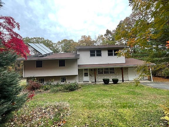 You will love the versatility of this split level home, starting with the sunny 21x20 bonus room addition with gorgeous hardwood floors and loads of windows. It would make a wonderful primary bedroom or perhaps a hobby or office space. The lower level has a finished space with propane stove, presently used as a family room, but could be a home office with its own entrance to the outside. Enjoy the hardwood flrs throughout the living area Present primary bedroom has its own 1/2 bath. Need storage space? The lower level has loads. Hot water is ample from the newer solar panel system (owned). Great quiet street in West Hatfield with a hiking preservation area up the road, close to Rte 5, Rte 91 and just minutes to Northampton. Nice yard, surrounded by trees for privacy, with lots of space for gardens. Nice newer outdoor shed for your lawn implements. And a brand new Septic system! Needs some TLC., but it will be well worth it. Hatfield offers low tax rate, and great schools.