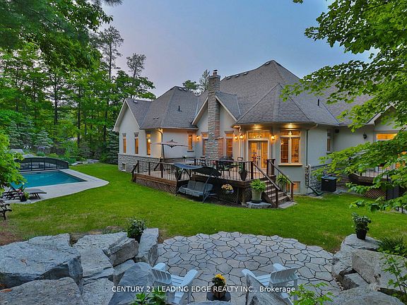 Step Into The Timeless Elegance of This Captivating Custom-Built (2009) Raised Bungalow Sitting on 1.98 Acres & Backing Onto 20+ Acres Of Pristine Conservation Land. Offering An Impressive 6892 SF of Living Space With A 3-Car Garage. The Finished Walk-Out Basement With A Full Kitchen Adds Versatility To The Living Space. Nestled In A Private Cul-De-Sac In The Prestigious Loggers Trail Estate Homes. With A Convenient 2-Minute Walk To The School Bus Stop (For Both Ballantrae PS JK-8 & Stouffville SS 9-12) Easy Access To Highway 404, and A 30-Minute Drive To Toronto Makes Commuting Effortless. Walking Distance To Famous Eldred King Woodlands & Minutes To 12+ Golf Courses. Dive Into Your Private Oasis, Featuring An In-Ground Heated Pool & Wood-Burning Sauna Offering A Resort-Style Retreat. The Forested Backyard Invites You To Embrace The Tranquility Of Nature, Creating An Ideal Space To Unwind & Recharge. Embrace the Harmonious Combination of Architecture & Nature In This Beautiful Home.