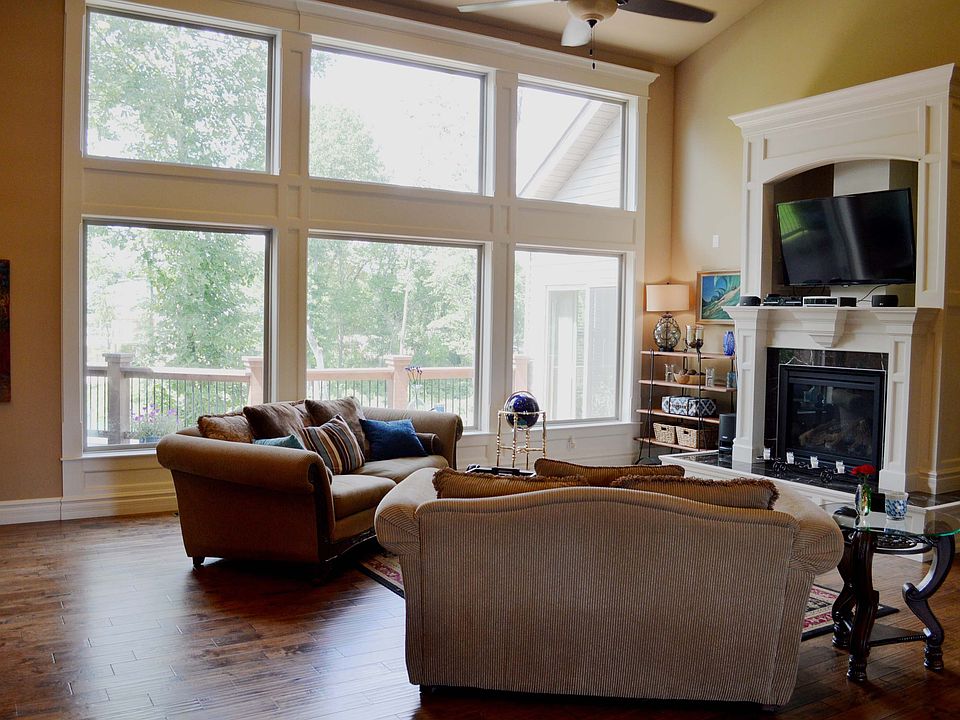 - Basement Description: Storage/Locker, Walk-Out, Partially Finished, Rec/Family Area, Sleeping Area, 9 ft + pour, Bathroom in LL, Fireplace in LL, Fireplace in LL