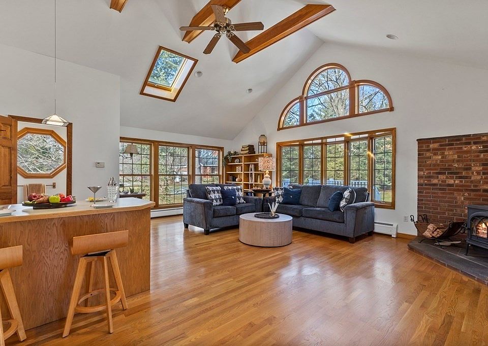 - Features: Bathroom - Half, Wood / Coal / Pellet Stove, Skylight, Ceiling Fan(s), Beamed Ceilings, Vaulted Ceiling(s), Flooring - Wood, Window(s) - Bay/Bow/Box, Wet Bar, Exterior Access, Recessed Lighting, Lighting - Overhead