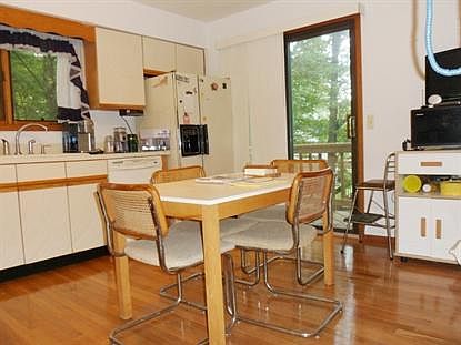 Original owner of this spacious light filled and well loved contemporary 4 BR home.Located minutes from rte 15, makes for easy access on and off the highway.Cathedral ceiling and skylight.Full front rm sliders contributes to the light, bright feel of this home.Sliders lead from the LR and Kit to huge decked areas, both front and back and a blacony off the mstr BR.Tons of recent home improvements include: new roof, newer multi car asphalt driveway, new open front deck, new wood flooring in the kit. FPL features a new wood burning stove, circulating fan for additional heat distribution and new cultured stone face and granite hearth. New downstairs carpet. New exteriop paint and new interior paint in family room and dining room.