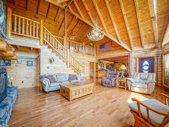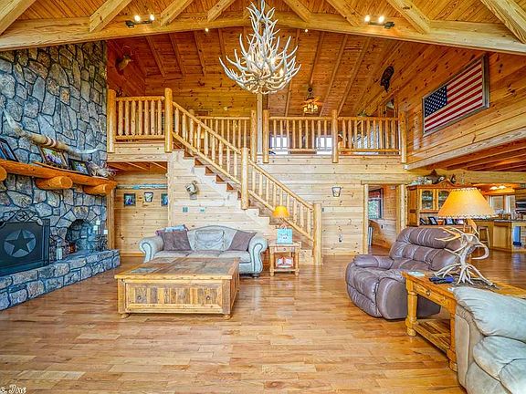 Nestled on 9 peaceful acres, this stunning log home was custom-built w/no expense spared. The home greets you w/soaring ceilings, gleaming hardwoods & a commanding double-sided fireplace. Exposed wood beams frame the breathtaking mountain & pond views from the front windows. A classic lodge feel w/an enormous master suite on main level & an open loft w/2 more bedrooms/1 bath upstairs. Granite countertops, travertine shower in master, media room w/a built-in bar & a composite deck. Come & see for yourself!