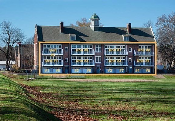 HATFIELD CENTER SCHOOL CONDOMINIUMS! PRICE INCREASE REFLECTS addition of LARGE bank of SOUTH facing windows!! Long awaited & much anticipated these homes are waiting for you to fall in love! ...you will be inspired by the attention to detail in this stunningly renovated & restored building...marvel at the historic facade, slate roof, original hardwood floors, doors, and woodwork. These 8 Luxury Laden units for the 55+ set boast high ceilings, massive windows (the LIGHT!!) & sliding doors that summon you to the 24'x7' balconies for breathtaking views of the CT river, farm fields, & the Mt Holyoke Range. The field behind the building is protected forever & where begins a 2 mile river walk. LIVE in the very center of this quintessential New England town & delight in walks to the Library, Restaurants, Post Office, Senior Center, Town Hall, Farm Stands, Town Parks. Private garage & private parking spot, private storage, an elevator (all 3 floors) and 2 pets are allowed! QUALITY OF LIFE!!