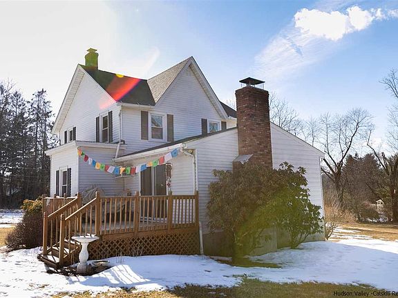 This light-filled 1870s home is surrounded by an expansive lawn and feels like a proper country farmhouse, but is a 3-minute drive along the beautiful Wappinger Creek to the Metro-North Station at New Hamburg, 10 minutes to Adams Fairacre Farms or the Poughkeepsie Galleria, and 15 minutes to the center of Beacon. The home has maintained many of its historic details, including the impressive exterior, high ceilings, cast-iron radiators, and hardwood floors. It's also been updated to modern living standards with an eat-in kitchen, and updates from the recent owner include a new Jotul wood-burning insert, new leach field, new water pressure tank, and a new water filtration system. There are two full baths, one downstairs that could be used to create a first-floor bedroom suite with the current den. The level 1.3 acre lot has frontage on two roads and may be able to be subdivided (must be confirmed with town), but certainly affords privacy and a sense of being in nature. One fantastic new addition to the neighborhood is the organic Obercreek Farm across the street, which supports a CSA and a tasting room for their Obercreek Brewing Company. (Note: the home is officially counted as a 3-bedroom by the town, although is set up currently as a 2-bedroom.)