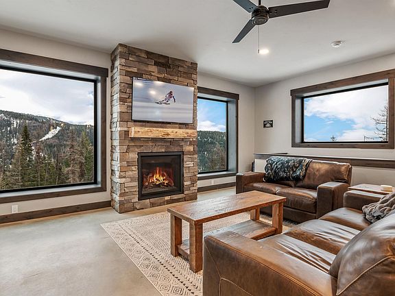 - Description: Italian Leather Sofas & Cozy Fireplace with Views