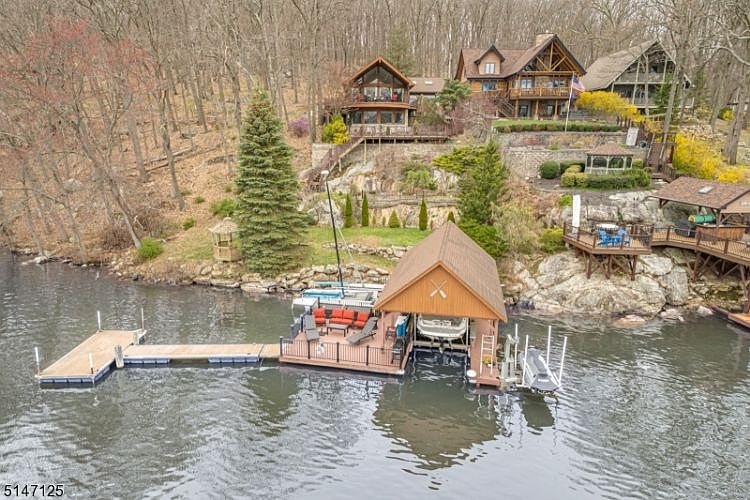 When The Ordinary Won't Do! Here it Is! Exceptional Lake Front At Mason's End! Next To Green Acres, Do Not Miss This Home, Panoramic Views For Miles. At Waters Edge, Soak In The Sun, Swim and Enjoy your Floating Dock, And Level Sitting Area - Boat House, With Lift for Boat and Jet Skii, Tiered Levels of entertainment! Open Floor Plan. Double Sided Fireplace, Newer Kitchen with Granite Counter Tops, Stainless Steel Appliances, Cathedral Ceiling. Spacious Living Room, and Dining Room with Walls of Windows, Overlooking Magnificent Lake Hopatcong. Much to Offer, Light and Bright Inside, Three Spacious Bedrooms, Three Full And One Half Baths, Walk out, Lower Level Family Room And Also With Wall of Windows on the Second Tier of Satisfaction sitting outside or in. Central Air. Generator Services The Whole Home, All Appliances, Hardwood Floors, Ceramic Tile, Newer Baths, New Carpet, Vacation at Home, From The Hustle and Bustle of Life, With Four Season Activities, Nearby Skiing, Hiking, Biking, Restaurants, Wonderful Commuter Location. And All With a One Year Home Protection Plan Included In Sale *****Highest and Best Due by 5 PM Monday 6-6-22.