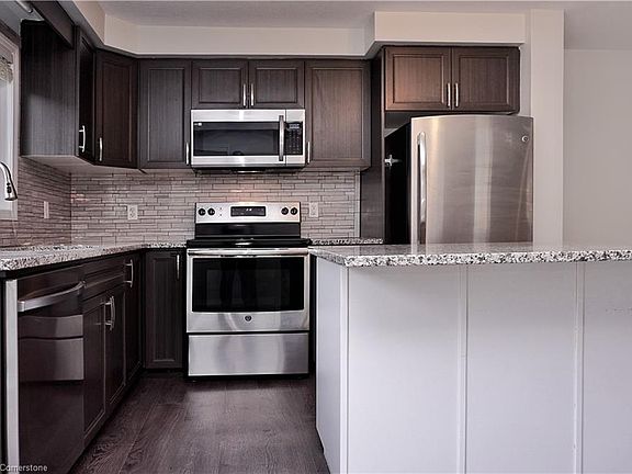 Stunning 3-bed, 4-bath end-unit executive townhome with finished basement and parking for 3 cars - no condo fees! Freshly painted and move-in ready, this like-new gem in Doon South boasts an open-concept layout with upgraded laminate flooring and a modern kitchen with stainless steel appliances. The luxurious master suite features his-and-hers closets and a spa-like ensuite with tiled shower. Enjoy outdoor living on your private wooden deck with fenced yard. The fully finished basement includes a spacious rec room and ample storage. Prime location near top-rated Groh Public School, Conestoga College, parks, scenic trails, and with quick Highway 401 access. Recent upgrades include fresh paint throughout and new appliances - simply unpack and enjoy!Key features:Rare 3-car parking in a townhome settingNo condo fees means more savingsEnd-unit provides extra windows and privacy4 full bathrooms for ultimate convenience. Like new condition with all new paint!