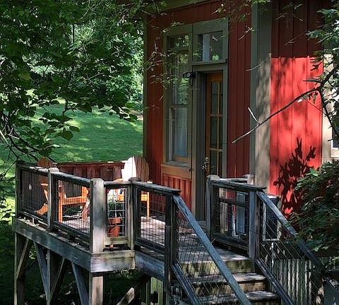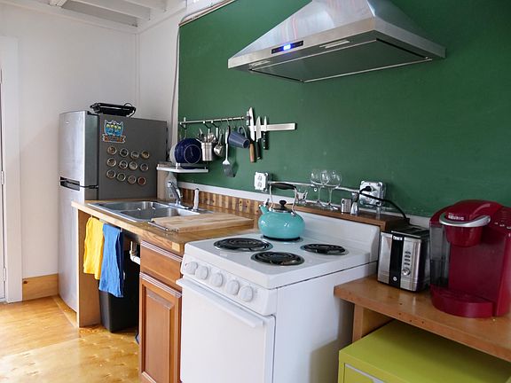 Furnished, private, and light filled cottage in West Asheville just 2 blocks from happening Haywood Ave! The cottage is set on the back half of the property, behind a small craftsman house. Walk down the stone path and up the stairs to your own very private building. On entering, you find yourself in an L shaped open space with vaulted ceilings and large windows looking out onto the trees. A large, loft bedroom is accessed by a cool old library ladder. The kitchen and bathroom are tucked underneath the loft bedroom. The kitchen is equipped with an electric stove, refrigerator and storage space. The single bathroom has a jacuzzi tub and shower. A washer and dryer can be found in a shared basement area in the main house. All utilities are included, including WiFi. Please note that smoking on the property is not allowed. Please note the furnishing have changed. Photos will be updated later today. I will be showing the house April 18 and 19. Available for month to month lease since the house is for sale. The house has been on the market for a few months so there are very few showings and I am happy to offer you a $20 credit for each time the house is shown as well as a two hours advance notice of a showing.