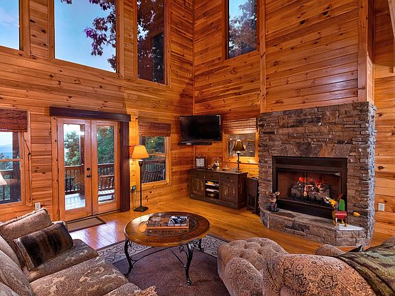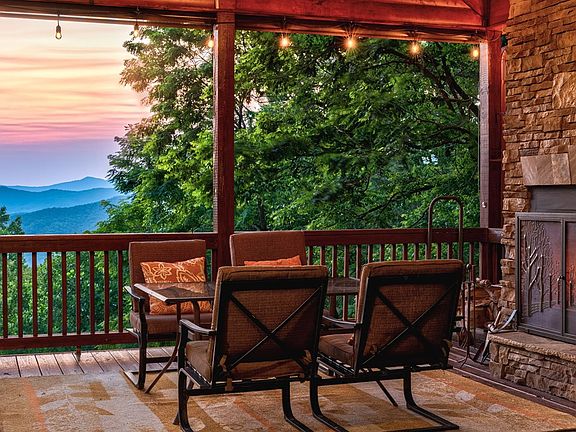 Million-Dollar Year-Round Views in Sought-After Mountain High. Enjoy sweeping, unobstructed long-range views from this stunning mountain retreat in the coveted Mountain High community—renowned for upscale homes, all-paved roads, and truly breathtaking vistas. This classic cabin masterfully combines rustic charm with refined comfort and a layout perfect for both entertaining and quiet relaxation. The open-concept main level features hardwood and tile floors throughout, anchored by a cozy gas log fireplace. The chef's kitchen is a standout with granite countertops, custom cabinetry, stainless steel appliances, a breakfast island, and a charming dining nook. Step out onto the expansive covered porch to take in panoramic views by the warmth of the outdoor fireplace. A spacious main-level bedroom suite offers double vanities, a jetted tub, tiled shower, and walk-in closet—plus the convenience of a nearby laundry room and pantry. Upstairs, the large open loft (complete with a pool table and dramatic wall of windows) leads to a luxurious master suite featuring its own fireplace, private balcony, spa-like bath with jetted tub, tile shower, granite counters, and a walk-in closet. The finished terrace level is built for fun and functionality, boasting a wet bar, game area, third fireplace, full bath with tub/shower combo, and an additional bedroom. Outdoor living is easy with multiple decks and a usable yard—ideal for gatherings or simply enjoying the mountain air. An adjacent lot is also available for purchase—perfect for added privacy or future expansion. Short-term rentals are allowed, making this an excellent investment opportunity or full-time escape.