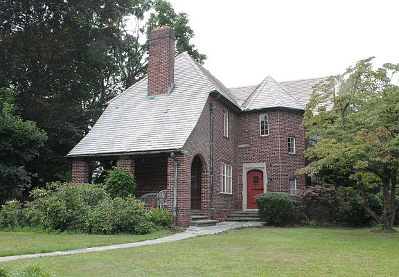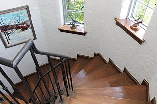 Everyone who has driven past this home, knows it. Originally the "Strawn House" built during the depression (1931) Original home cost approx $60,000, which should make it worth about 2 or 3 million dollars today...but we are offering this at a bargain price. What a wonderful, unique all brick home with that distinguishing turret front and open porch. Beamed high living room ceiling with fireplace; Large windows through out; Wood flooring; alcoves and unique rooms; Wonderful front door and an entrance way with a glance at the spiral stairway winding through the turret to the second floor; The kitchen is very old fashion with an interesting-quaint breakfast nook. Can you imagine 2-1/2 baths in this home built "ahead of it's time". A two car garage (perhaps it was for carriages). The loft is above the garage, now with access from the 2nd floor; Lots of copper gutters/windows/ downspouts; Shrubbery and trees make it seem like you are "in the country". One of a kind....