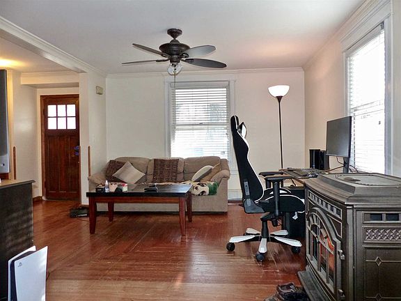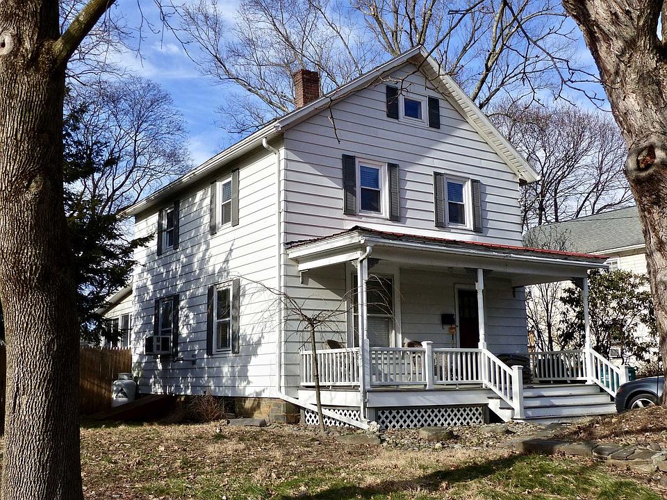 This traditional two-story home with covered sitting porch sits proudly on a pretty, tree-lined village street, within easy walking distance of restaurants, shops and all downtown amenities. Once designed for clear separation of spaces, the main level floor plan has been opened up for better flow, and with hardwood floors throughout, was expanded to included a family room with a high ceiling, skylights and access to a rear yard deck as well as a first floor full bath. The kitchen offers plenty of countertop work space, ample storage, and is open to the dining area. The spacious living room is anchored by a substantial pellet stove, providing atmosphere and keeping the main level comfortably warm as a secondary heating source (has its own thermostat/zone). Upstairs, off of a large landing, are three bedrooms (all with hardwood floors), a full bath and access to the attic, which provides for heated storage. The full basement has interior access, an exterior bulkhead, concrete floor and is home to maintained mechanical systems and the washer/dryer. Set on a mostly level, fenced lot with patio, storage shed, small yard and mature trees.