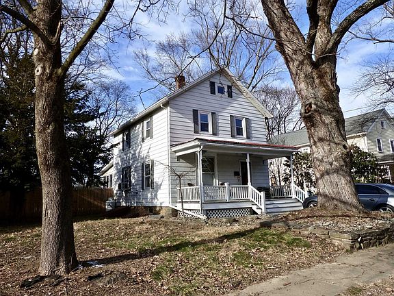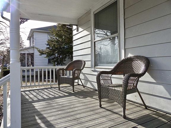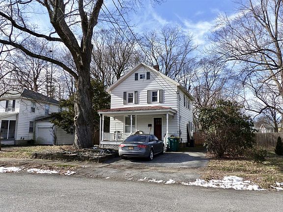 This traditional two-story home with covered sitting porch sits proudly on a pretty, tree-lined village street, within easy walking distance of restaurants, shops and all downtown amenities. Once designed for clear separation of spaces, the main level floor plan has been opened up for better flow, and with hardwood floors throughout, was expanded to included a family room with a high ceiling, skylights and access to a rear yard deck as well as a first floor full bath. The kitchen offers plenty of countertop work space, ample storage, and is open to the dining area. The spacious living room is anchored by a substantial pellet stove, providing atmosphere and keeping the main level comfortably warm as a secondary heating source (has its own thermostat/zone). Upstairs, off of a large landing, are three bedrooms (all with hardwood floors), a full bath and access to the attic, which provides for heated storage. The full basement has interior access, an exterior bulkhead, concrete floor and is home to maintained mechanical systems and the washer/dryer. Set on a mostly level, fenced lot with patio, storage shed, small yard and mature trees.