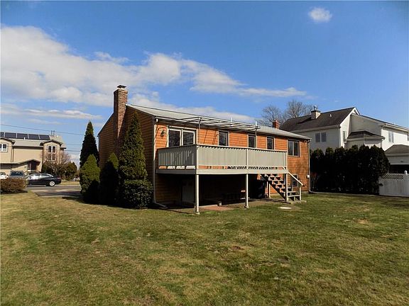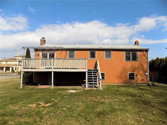 Beautiful home on double lot with great views of Narragansett Bay. Features include updated kitchen with stainless appliances and granite, central air, large deck for entertaining and open finished basement with woodstove. Private beach access directly across the street. Walk to the Quonset bike path at the end of the road.