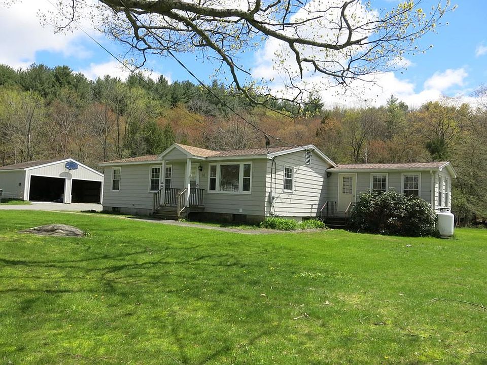 Watch the sunset from this light filled ranch home sitting on a top of a rise above the village of Cummington. This well maintained home is move-in ready with a recently remodeled kitchen and all the rooms have been freshly painted. Spacious 4 season sunroom or family room off the kitchen has a door to an expansive deck that overlooks a level sunny backyard. The eat-in kitchen with plenty of storage and counter space has an interior window to the living room that allow the light to pass through. There is a Rennai propane heater that efficiently and effectively heat the home. Full basement could be finished for more living space or use for storage. Level yard with several blueberry bushes is great for gardening or play space. Come check out this sweet home in a beautiful location at the open house, Sunday May 19 2-4 pm. More photos of the bedroom are coming soon as they were still being painted as of this posting. Home should qualify for most low down payment loans, like FHA.