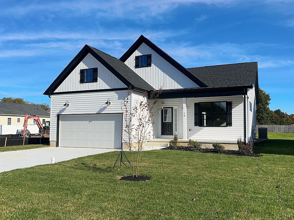Brand New Custom Home on Over 1/3 Acre – No HOA! Quick Delivery! Full Basement! Welcome to your dream home built by Sun Builders Inc—a high-quality custom new construction ready for a quick move-in! Situated on a spacious 1/3+ acre lot with no HOA, this home offers freedom, privacy, and luxury craftsmanship throughout. From the curb, you’ll love the modern vertical vinyl siding, full front porch, and professionally landscaped yard. Inside, the open-concept design features luxury vinyl plank flooring, granite countertops, soft-close cabinetry, upgraded fixtures, and recessed lighting. The gourmet kitchen opens to an expansive family room and includes pendant lighting, a full pantry, and sliding glass doors leading to your outdoor living space. The primary suite is a private retreat with a walk-in closet and spa-style bath featuring a tiled walk-in shower and double vanities. Two additional spacious bedrooms, a full guest bath, and a dedicated laundry room complete the main level. A full basement provides endless potential for finishing—perfect for a rec room, gym, or home office. ✅ Brand New Construction ✅ No HOA ✅ Full Basement ✅ Quality Craftsmanship by Sun Builders Inc Tankless Hot Water Heater 📍 Don’t wait—schedule your private showing today and make this stunning new home yours!