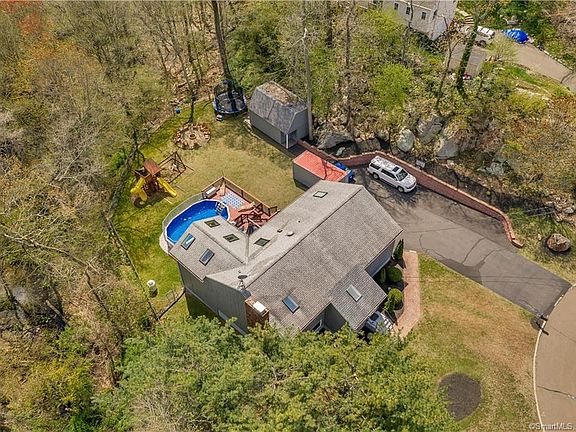 LOCATION!!!!! Beautiful home, on a cul de sac with conservation land behind it, tons of privacy! Heated swimming pool with a wrap around deck, glorious views into the woods, fire pt, storage shed, 2 car attached garage and a screened in porch. Underground irrigation system! It has all been freshly painted, new carpet, remodeled kitchen with granite counter tops, gas cook top, center island, open floor plan wonderful dining room, plenty of room for entertaining, light fulled sun room which leads out to the pool area. 4/5 generous bedrooms, a wonderful layout for a growing family! Master bed room with new carpet and it's own full bath, 2 more bed rooms on the upper level with a large full bath. The lower level welcomes you into a spacious family room with a cozy brick fireplace. An additional bedroom is on the lower level,with a full bath and laundry. Also there is a possible guest room or office on this level and the screened porch! Great commuting location to New Haven! Close to shops, restaurants and highway. A gem with privacy in a great location!!!