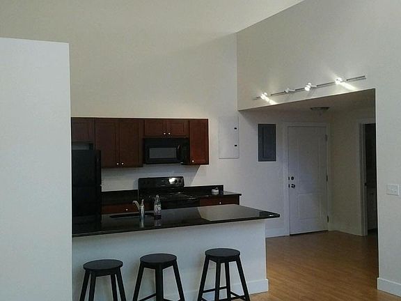 Loft style unit, living room, laundry area with washer dryer hookups, kitchen, two bedrooms (one upstairs and one downstairs) and two bathrooms (one upstairs and one downstairs). Near downtown Natick, walk to restaurants, shops, commuter rail. Pictures are of sample units in the building. Fixtures and colors are the same in each unit. Rent includes the heat and hot water. No pets and no smoking, off street parking available.