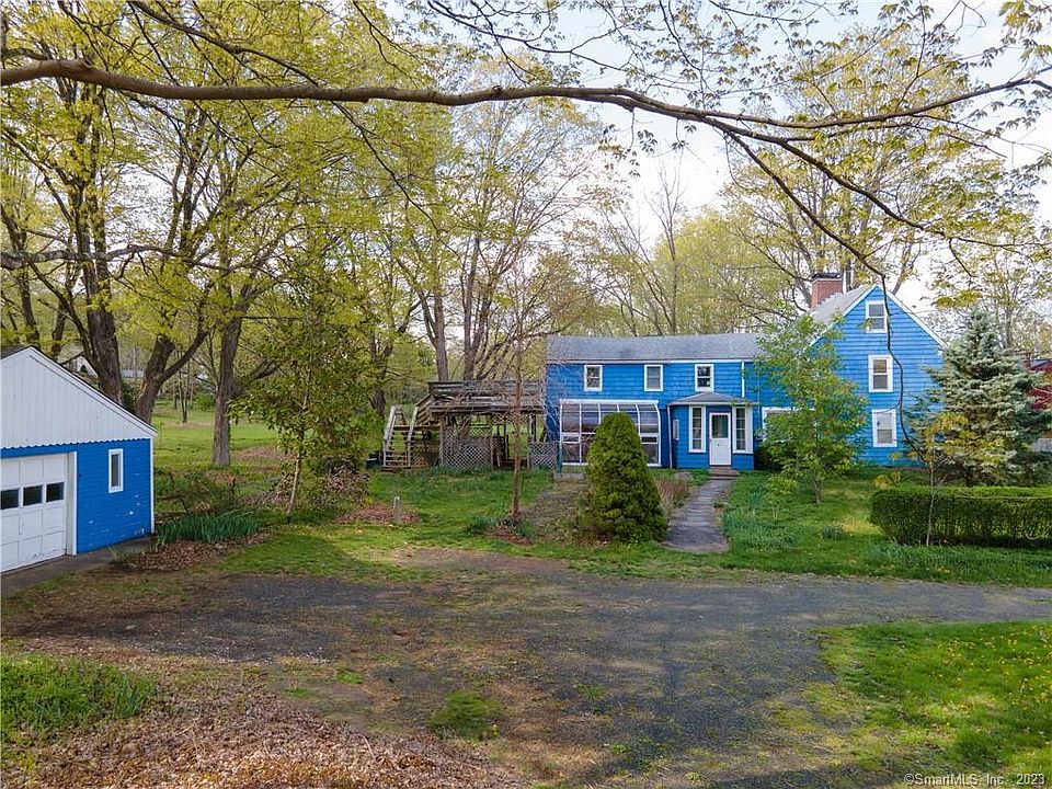 If you're looking to own a piece of History....This home is for You ! The Historic Benjamin Howd Home in the Village of Northford is waiting for you to make it yours.This Center Chimney Saltbox was built in 1740 and sits on over an acre of land, offering 2,889 square feet of comfortable living space. The main level features a front parlor/living room, sitting area, a keeping room that now serves as a dining room, a cozy private library or office space, and an expanded kitchen with newer appliances featuring a brand new dishwasher and a 3 year old electric stove. Sliders lead to the right side patio, while the left side of the kitchen has a greenhouse attachment with side entry and a mudroom. The main level also includes a full bath and laundry room with ample room for storage. The upper level features two front rooms, including the primary bedroom that opens to an office or craft space, and a separate additional front bedroom. The rear of the home includes a bedroom/play area with a half bath tucked within the blue doors, a slider to a deck with stairs to the yard. This home offers easy access to the main roads of Rte. 17 and Rte. 22, as well as nearby highways, making it an ideal location. The property includes an oversized garage w/ 200 Amps service and a large shed for all your storage needs. Come see for yourself the charm and character this historic home has to offer. Make the Historic Benjamin Howd Home your own today ! The town states that it is a 2BR, but the main level parlor with a nearby full bath has been used as a third bedroom. the septic tank is 5 years old and was last serviced last fall.